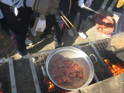 火も勢いよくつき,鍋を火にかけるグループも多くなってきました。