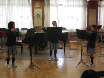 アンサンブルの最後を締めてくれたのは今月23日のアンサンブルコンテストに出場するフルート演奏です。
