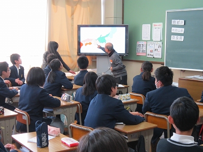 都道府県名を「手話」を通して表現しました。音楽室では、「大正琴」を使っていろんな音を続けて出すことができました。