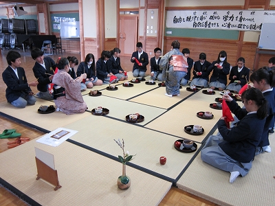 茶道は、お盆立てをしてお客様とおもてなし側に分かれて活動しました。