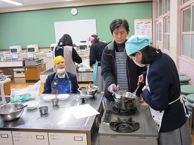 卵・牛乳をボールに入れて、バターを加えて混ぜ合わせました。
