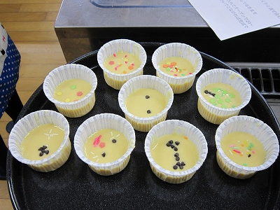 生地をマフィンカップに流し込み、オーブンに入れます。とっても美味しいホットケーキの仕上がりです。