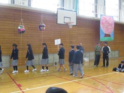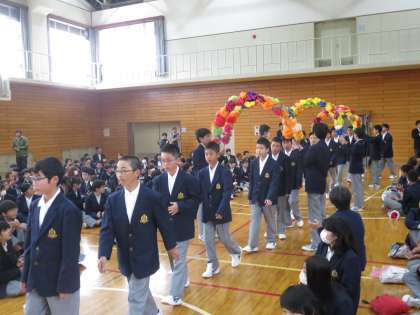 2・3年生の拍手と吹奏楽部の演奏にのって新入生の入場です。