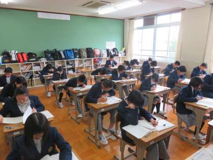 全国の中学3年生を対象とした「全国学力・学習状況調査」が本日,全国一斉に行われました。花山中学校の3年生も取り組みました。