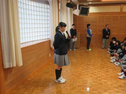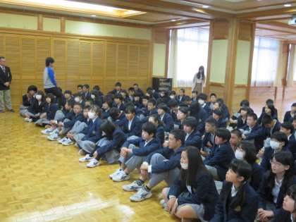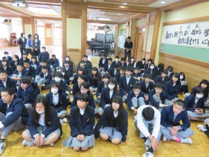 3年生が明日から2泊3日の予定で修学旅行へ行きます。6限に前日の集会が行われました。