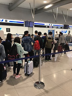 さあ、移動開始でいよいよ搭乗開始。そして荷物を預けて 準備完了!