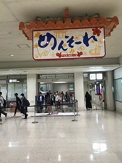 「めんそーれ沖縄」!那覇空港に到着しました。みんな元気に過ごしています。