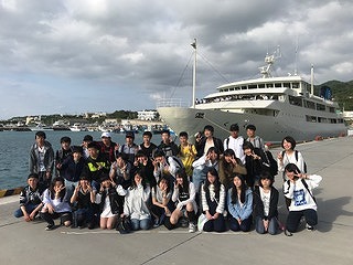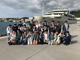 本部港でのクラス写真 「ハイ! チーズ!」