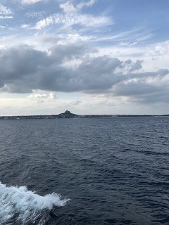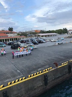 伊江島に到着しました。青い空(少し雲はありますが・・)に青い海、出迎えていただいた方々に感動。