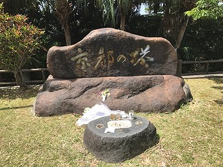 沖縄本島中部の宜野湾市にある嘉数高台は、沖縄戦時の激戦地で、今でも日本軍が使用した「トーチカ」があり戦争について学べる場でもあります。京都からも2530名余りの方が戦地に赴かれ、多くの方々がお亡くなりになられました。ここには,その方々を慰霊する「京都の塔」が建立されています。