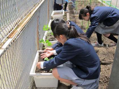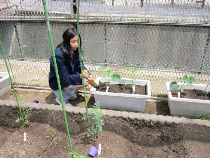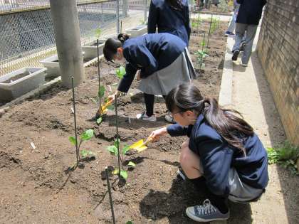 技術の菜園活動では,なすび・ししとう・きゅーり などを栽培します。