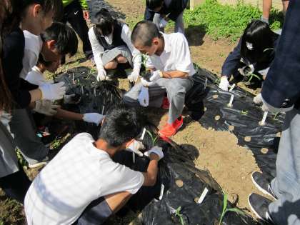 夏休み前の収穫まで,毎朝の水やりや雑草抜きなど作物の健康状態も大切にします。