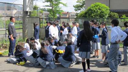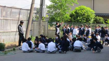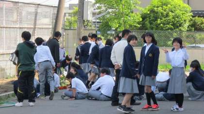 1年生は、花山中学校で初めての菜園活動です。ししとう・なすび・ピーマン・ミニトマト・きゅうりの夏野菜の苗植えです。みんな笑顔いっぱいの活動でした。