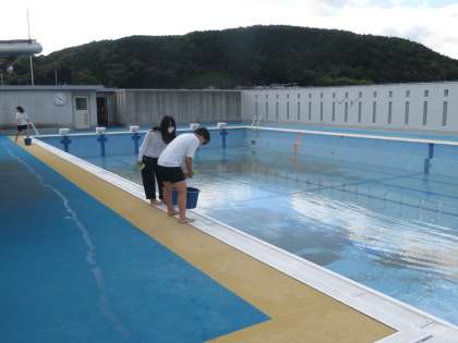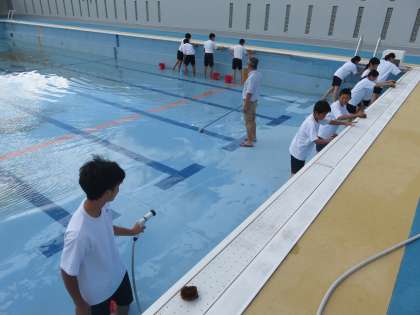 来週からはじまる水泳の授業にさきがけて,プール清掃がおこなわれました。