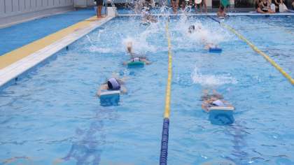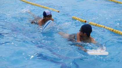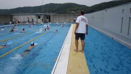 きれいな青空が広がり、緑の美しい朝です。今週からプールで水泳学習が始まりました。