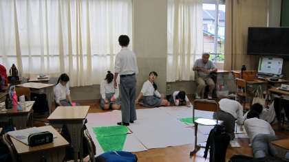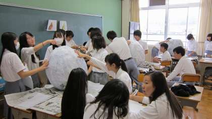 学年の展示作品や劇にむけて背景づくり。みんなで力を合わせ素晴らしい作品が仕上がってきました。
