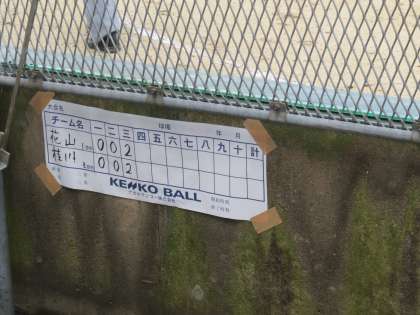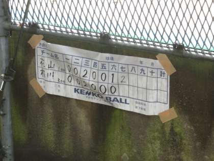 6回にランナーを3塁にすすめた花山は相手のワイルドピッチにより1点を加え,3−2と再びリードします。7回の前に雨による中断もありましたが,花山は集中力をきらさず逆に7回にだめ押しの2点を追加。5−2で勝利をおさめ1回戦突破です。