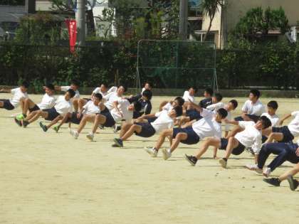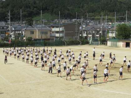 学校祭体育の部3年生学年演技「Kasan'sソーラン」の練習です