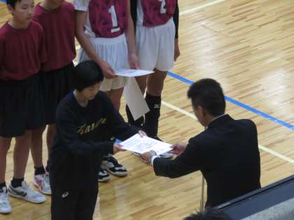 第3セットは相手に先行を許す苦しい展開となり,終盤に粘りをみせ追い上げますが,逃げ切られてしまい,1−2の悔しい逆転負けとなり,3位でした。2月の府大会への出場権は得ていますので,そこでの健闘を期待します。ひとまず3位おめでとうございます。