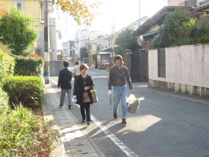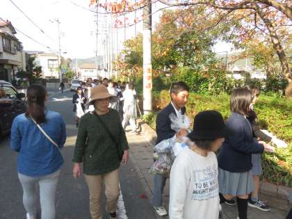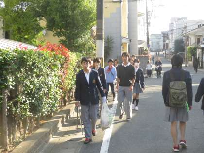 生徒が各地域へ出向いて,地域の方と合流して学校へむけて清掃活動をおこないます。