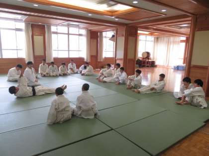 体育の授業で柔道がはじまりました。受け身の習得からです。