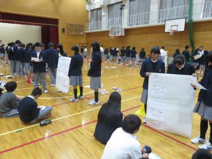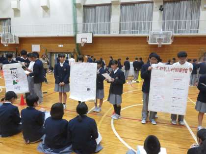 この報告会は2年生が次年度にチャレンジ体験を行う1年生に対し,ポスターセッション方式でプレゼンテーションをおこなうものです。