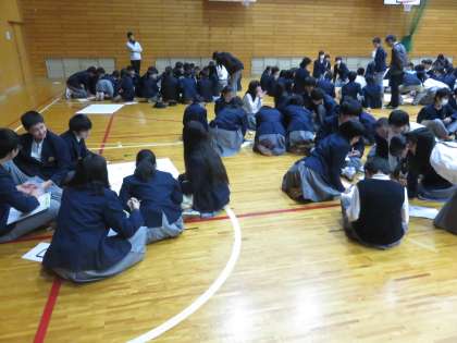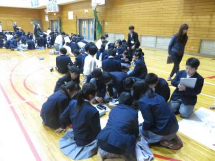 縦割りの話し合い活動が主体ですが,3年生がリードし活発な意見交流がされています。