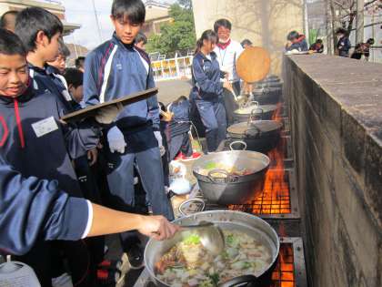 菜園からの、とれた野菜を鍋に入れます。グツグツと鍋が煮えてきました。