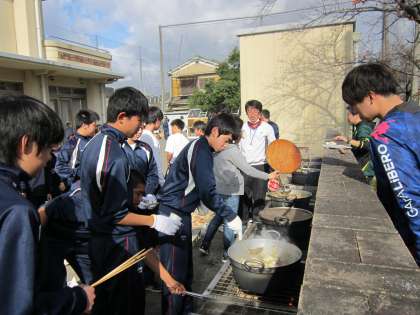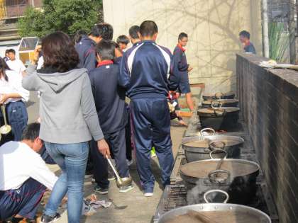 各グループ、かまどの火力の調整を行っています。
