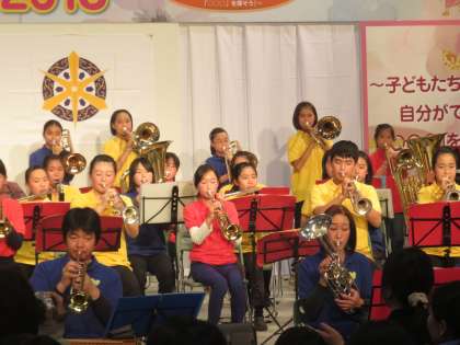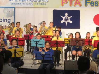 花山ファミリーバンドは,鏡山小学校・陵ヶ岡小学校・花山中学校の合同バンドに,各PTAや地域の方々で結成されたバンドです。3年前から,PTAフェスティバルの舞台に参加しています。
