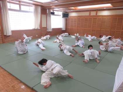 久しぶりに授業風景をお届けします。まずは体育での柔道。受け身の稽古です。