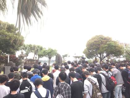 「平和への誓い」の後、千羽鶴を奉納しました。