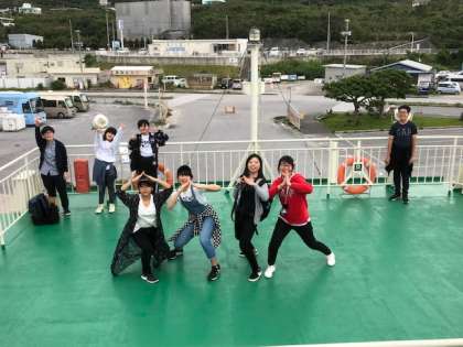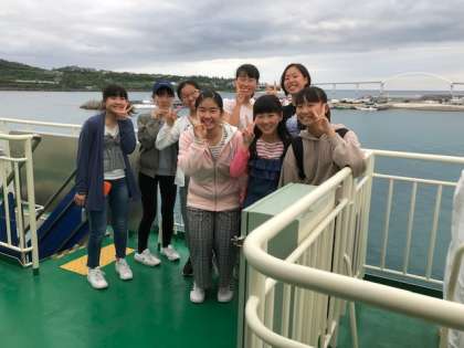 「みんなの笑顔」をいっぱい乗せて、フェリーはステイ先の伊江島へ向かっいてます。