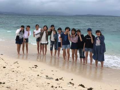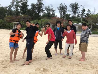 伊江島の美しいビーチで、みんな元気に過ごしています。