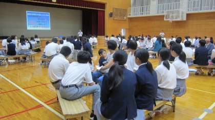 生徒より「この学習で、花山って本当に良いところだなあって思えたし、故郷、ふるさとを大切にしていこうと思えました。地域の人々ともいっぱい関わったし、今日出た花山の良いところ、自然などを守って過ごしたら良いなあと思いました」など、同じ地域に暮らす人々との交流・協力することで”地域を大切にする心”を育てることができました。