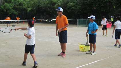 部活体験中は、中学生も小学生の前で一生懸命活動していました。