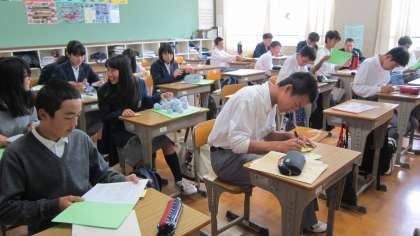 2年生は学年集会を行いました。本日実施するチャレンジ体験の事前訪問の心構えや注意事項について確認しました。その後、各教室で体験中に使う名札の作成や体験日誌の準備などをしました。