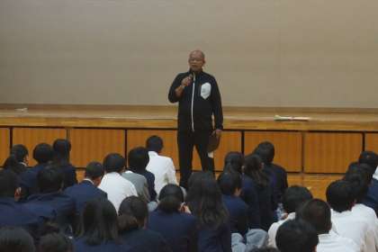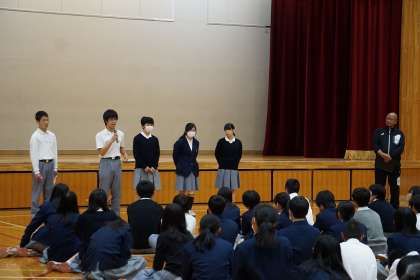 チャレンジ体験を直前に控えた本日の6時間目は、体育館で学年集会を行いました!最初に先生からの激励の言葉があり、各クラスの代表生徒が決意表明をしました。