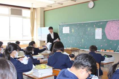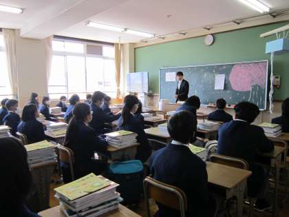 1組の学活の様子です。学級通信「奏」を使い、担任の先生の思いをはじめ、今後の予定が丁寧に説明されていました。1組は、様々な行事等で、一番最初に動くことが多いクラスです。そんな意識を少し持って、これからの学校生活を送ってください。1組は、これから一年、どのような音色が奏でられるのでしょうか、楽しみでなりません。