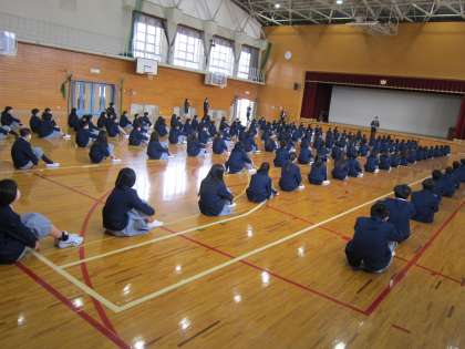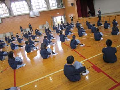 3時間目には、はじめての「学年集会」を実施しました。6年間の小学校課程で培った自分自身の「あたりまえ」がいかなるものかを今一度振り返ってほしいと思います。変えなければいけない「あたりまえ」があるでしょう。引き続きがんばっていく「あたりまえ」もあるでしょう。人間は、意識しないところで、体に染み込んでいる「あたりまえ」をもとに色んなことをしています。中学校3年間で、進路実現のためや、自分自身の成長のために必要な「あたりまえ」をしっかりと構築し、実践していくことができる人になってください。