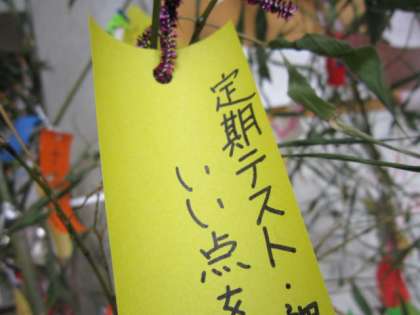 年に一度だけ会える織姫と彦星。日本には、季節の行事がたくさんありますが、七夕は、日付(7月7日)が表すような数字の並びのよさやロマンチックな言い伝えがあるので、何らかの「記念日」にしたりする人が多いですね。7月7日、七夕の日、今日はとってもいい日だと思います。昨日、1年生では、短冊を書きかました。様々な願い事が書かれており、ずっと見ていても飽きません。テスト前ということもあり、「テストでよい点数が取れること」を願う短冊が多かったように思います。ただし、短冊に書いただけで点数が取れるほど甘いものではありませんね。願いをかなえるためには「努力」しかありません。今日も、しっかり勉強して下さいね。連日の雨、今日も雨。残念ながら、織姫(こと座のベガ)と彦星(わし座のアルタイル)は全く見えないと思いますが、七夕の今日もがんばりましょう。