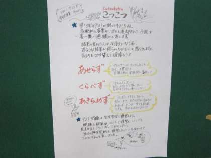 本校には、授業中に限らず、授業外においても、学習に対する様々な支援をして下さる先生に来ていただいています。みなさんの学習の成果を上げるためには、教科担任の先生の力だけでなく、このような立場でサポートして下さる先生の力が欠かせません。写真は、その先生がみなさんのために作っていただいた掲示物です。教科を教える我々教職員にとっても非常に勉強になる内容です。みなさんも一度しっかりと読んでみてください。先週、第1回定期テストが終了したところですが、すでに新しい学習内容に入っている教科がほとんどです。「学習の仕方がわからない」「授業中に困っていることがある」など、小さなことでも不安がある人は、遠慮なく相談してみてください。放っておくことが一番いけないことですよ。