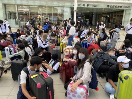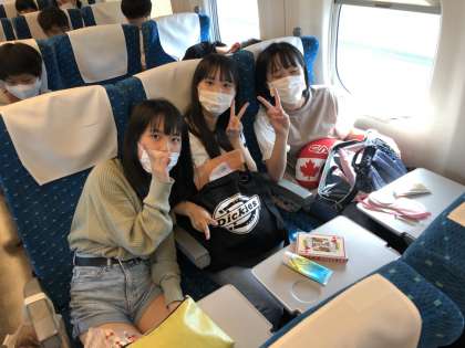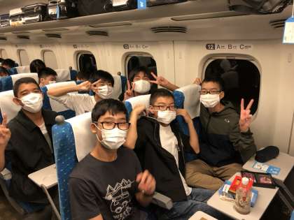 新幹線の中の様子です。広島まで約2時間の旅,行儀のよい乗客のみなさんです。そして列車は10:32に広島駅に到着。さあこれからバスで一路広島平和記念公園へ!