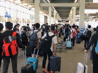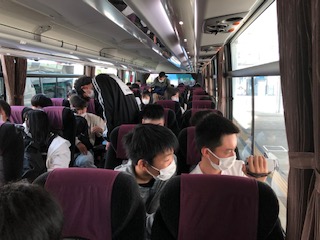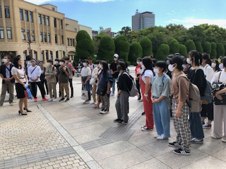 広島駅ホームからバス乗車。広島平和記念公園へと向かいます。ここで説明を聞きます。