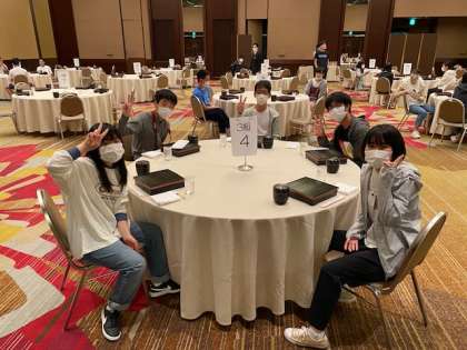 朝食会場です。ごちそうさまも忘れません。間隔を保ちながらの、朝食となりました。