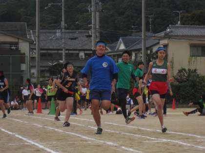 部活対抗リレーはまず文化部から。そして運動部女子。先生チームも参加です。