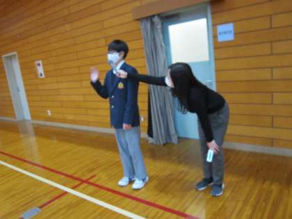 体育館に行くと、体育の授業ではなく、英語の授業が行われていました。体を動かしながら発している言葉は英語。とても楽しそうに取り組んでいました。机上で行われることが多い勉強も、こうして体を動かしながら行うと、新鮮ですね。昔、放映されていたドラマ「ドラゴン桜」を彷彿させる授業でした。