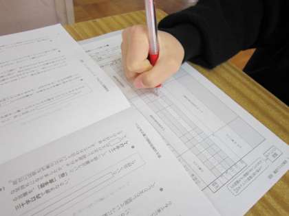 先日行われた学習確認プログラムの自己採点を行いました。学習確認プログラムは、結果が返却されるまでに1〜2か月かかります。そのため、間違ったところや弱点等を克服しないまま終わってしまうこともありがちなことです。もちろん、得点も大事なのですが、「定着」を第一に目指し、自己採点を行うことにしました。少し大変な作業でしたが、問題を解きながら、問題用紙に解答を書き写すことを徹底することができました。さあ、自己採点の結果はいかがだったでしょうか。