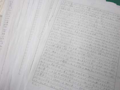 「学校祭体育の部『ソーラン』振り返りシート」が集まりました。この用紙は、ソーランの取組で、自分はどんなことを、どんなふうに頑張ったのか、そして、今回の頑張りを今後どう活かすのか等を書くものです。先日の学年だよりにも記載しましたが、この世で最も大切な宝物は「経験」と「感動」です。内容は何であれ「一生懸命やった」という経験、そこに生まれる感動。それらを「字」にして残しておくこと、これは「未来の自分」のために本当に大事なことだと思います。未来の自分のために、一生懸命書かれた文章。大変読み応えのあるものが多かったです。