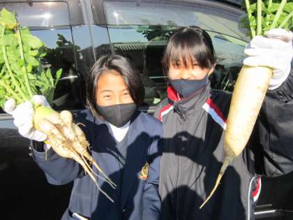待ちに待った大根収穫の日となりました。相手は自然。同じ畑で育てたにも関わらず、大きいものから小さいものまで、まっすぐなものからなんじゃそりゃまで、本当に様々でした。どの大根にも「よくここまで育ってくれたね」という言葉をかけてあげましょう。そして、葉っぱまでおいしくいただきましょう。